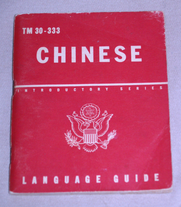 | 16637 | War Department | TM 30-333 Chinese A Guide To The Spoken Language | War Department | Good. Light shelf wear and creasing on the covers. | 4.25 x 5.25 inch booklet on the Chinese language for servicemen in WW2. | China, Language, WW2 | $25 |