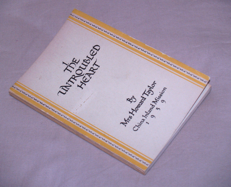 | 16766 | Taylor, Mrs. Howard | The Untroubled Heart | China Inland Mission | Good. One stain on the front cover, light soiling on both. A small China Inland Mission stamp on the front free endpaper. | Christianity in China. | Missionaries, China, China Inland Mission | $25 |