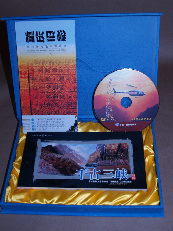 | 16914 | Staff | Appreciation of Chongqing's Scenery A Boxed set with 2 books of post cards and a CD | Chongqing Publishing House | Good. Presentation box has a small bit of paper missing, the books of post cards have slight shelf wear, the CD has some surface marks but works well. The CD pocket has short tears. | Two books of post cards and a CD in a presentation box. The CD is "...A Bird Eye View of New Chongqing" | Chongqing, China | $100 |