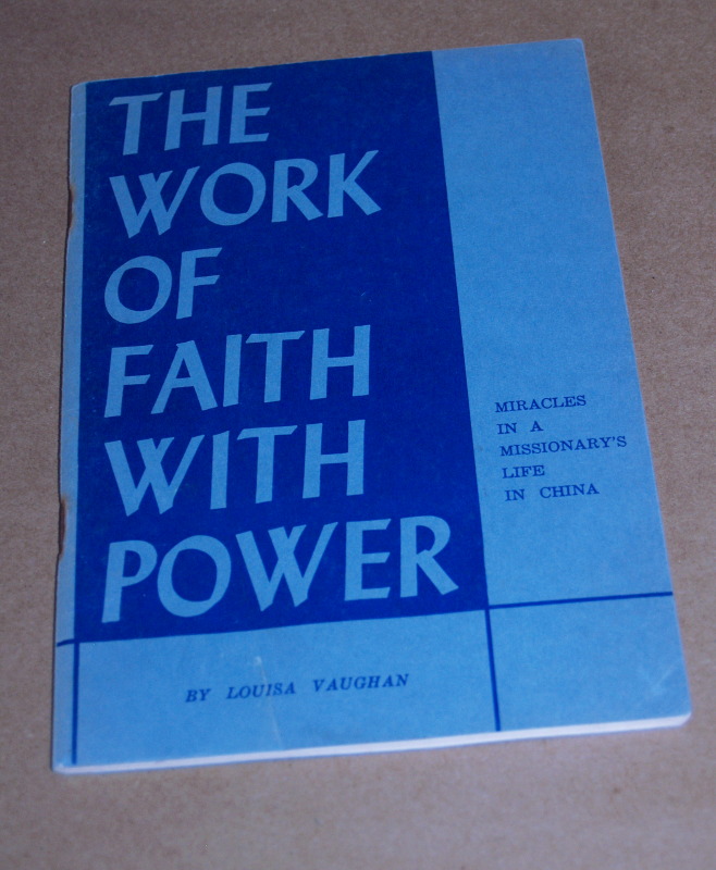 | 17070 | Vaughan, Louisa | The Work Of Faith with Power Miracles In A Missionary's Life In China | Praire Bible Institute | Good. Multiple vertical creases on the whole book. Ink inscription on the front free endpaper. Rusty staples. | Missionary to China from 1896 to 1912. | Missionary, China | $25 |
