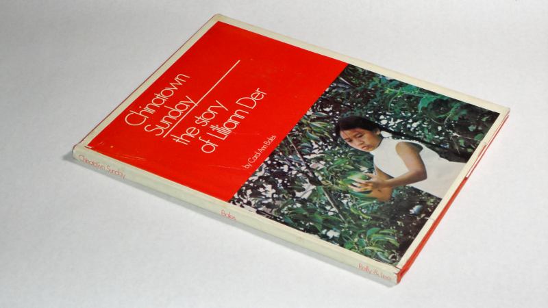 | 8169 | Bales, Carol Ann | Chinatown Sunday The Story Of Lilliann Der | Reilly & Lee 1973 8.5 X 11 inches with b&w photos. | Good to very good. In a worn, creased and lightly chipped dust wrapper. Presentation card and owner's name and address stamp attached on the front free endpaper. | Chinatown, Lilliann Der | Chinatown, Lilliann Der | $18 |