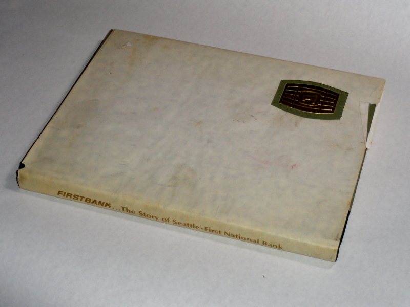| 15164 | Scates, Shelby | Firstbank The Story of Seattle-First National Bank | Self-published | Good. Light shelf wear. In a fair to good worn and wrinkled dust wrapper. | 8.5 x 11 inches, the history of Seattle-First National Bank. There are ink sketch illustrations and a separate family tree fold-out. | Seattle, Corporate history, Seattle-first National Bank | $20 |