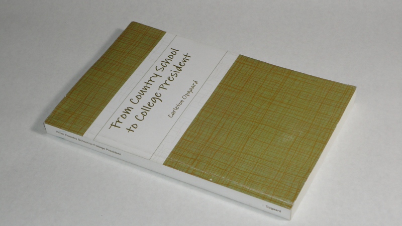 | 13898 | Opgaard, Carleton | From Country School To College President | Self-Published | Very good. Light shelf wear on the covers. Tips of some pages are creased. | An autobiography of Carleton Opgaard, educator - taught in Washington State, British Columbia and South Dakota. There Are b&w photos. Dr. Opgaard inscribed this copy to a friend. | Autobiography, education | $25 |