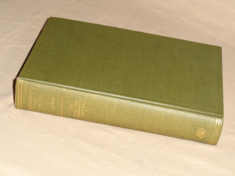 | 15910 | Dewey, John | Experience and Nature | Open Court Publishing Company | Very good. Owner's name in ink inside. No dust wrapper. | Lectures upon the Paul Carus Foundation, First Series. There's an index. | Philosophy, education, psychology | $300 |