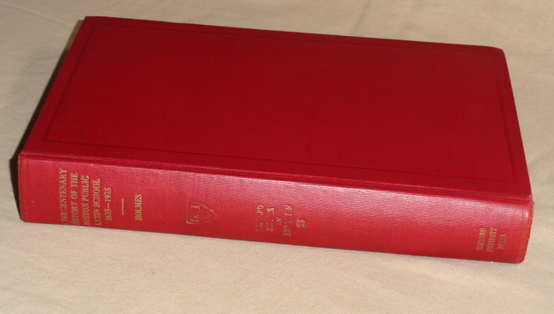 | 15930 | Holmes, Pauline | A Tercentenary History Of The Boston Public Latin School 1635- 1935 | Cambridge Harvard University Press | Good. Spine lettering fading. Pencil name inside. | Harvard studies in education Volume 25. There are many photos, illustrations, appendicies, bibliography and an index. | Education, Boston, Massachusetts | $100 |