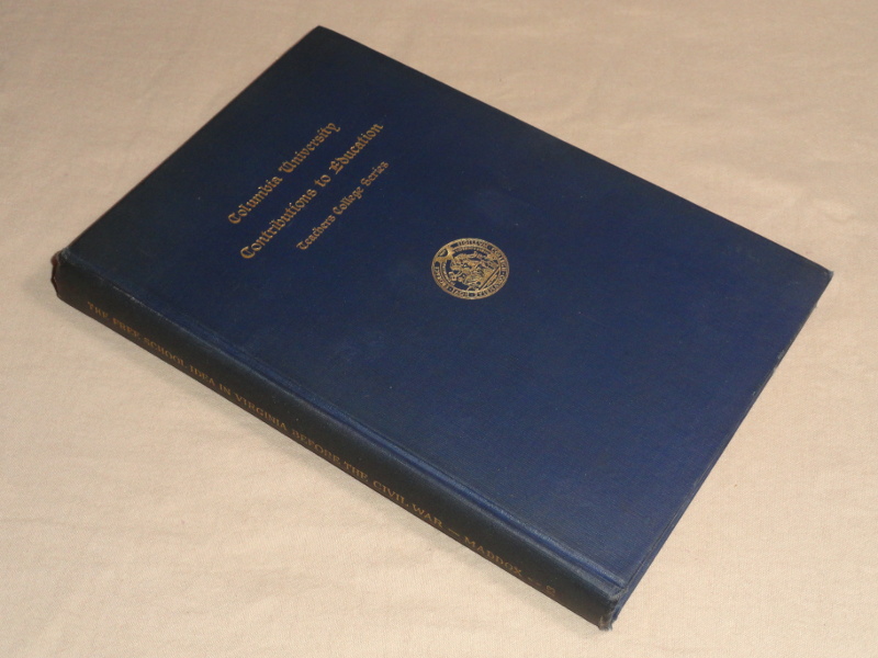 | 15952 | Maddox, William Arthur | The Free School Idea In Virginia Before The Civil War A Phase Of Political And Social Evolution | Teacher's College, Columbia University | Good. No dust wrapper. | From the Columbia University Contributions to Education Teachers College Series. There's a bibliography and an index. | Education, Virginia | $50 |