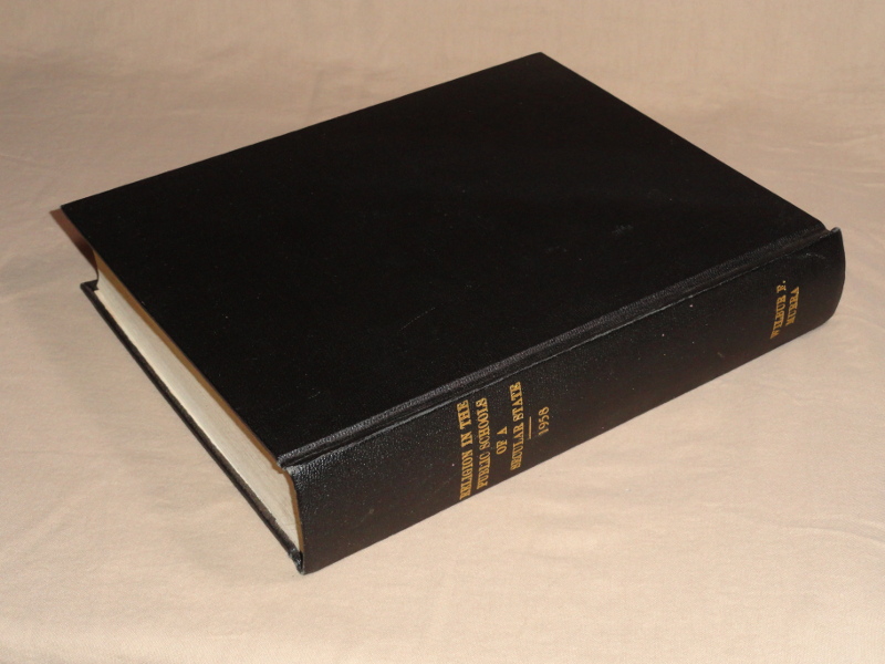 | 15964 | Murra, Wilbur Fim | An Inquiry Into The Role Of Religion In The Public Schools Of A Secular State | Self-published | Good. | 8.5 x 11 inches, typed and bound doctoral dissertation for the University of Mminnesota. There's an extensive bibliography. Inscribed by the author to a professor. | Education, Religion, thesis | $30 |