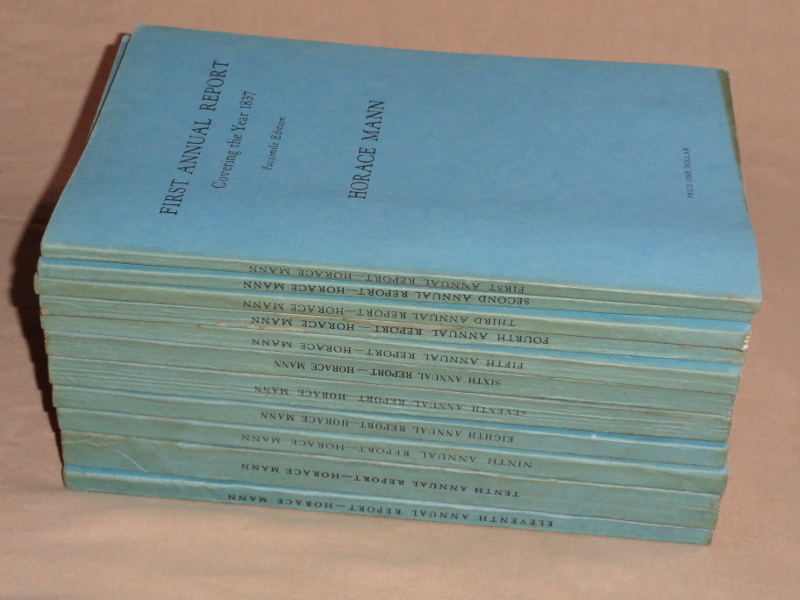 | 15990 | Mann, Horace | Annual Reports of The Board Of Education, the first 11 issues in facsimile, 1837-1847 | National Education Association | Good. Owner's name in ink in each volume. Light soiling and staining. | Education | Education | $50 |