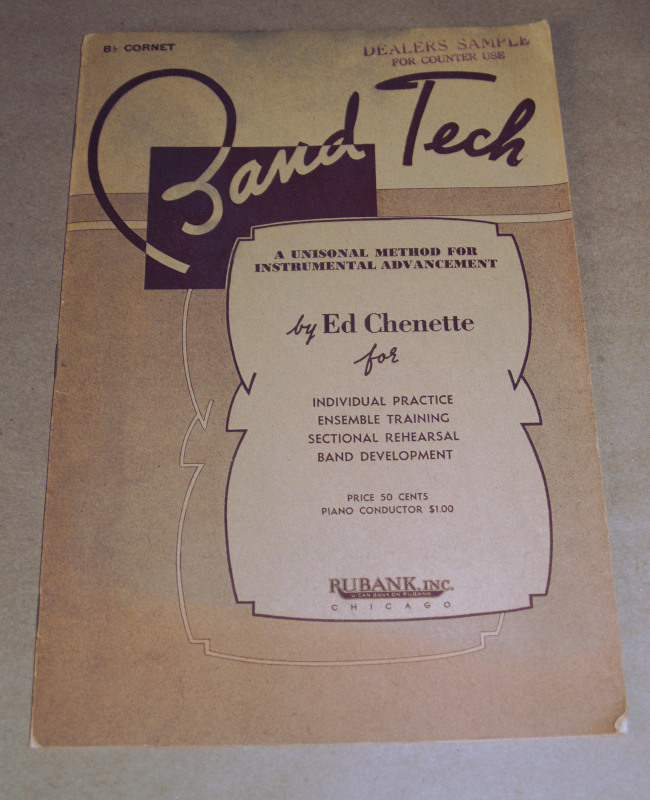 | 16965 | Chenette, Ed | A Unisonal Method For Instrumental Advancement | Rubank, Inc. | Good. 'Dealers Sample...' stamp on the front cover. Covers have light shelf wear and creasing. | Band Tech, B flat cornet | Music, education, Cornet | $20 |