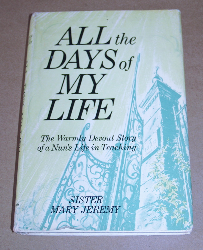 | 17073 | Jeremy, Sister Mary | All the Days of My Life | Bobbs-Merrill Company Inc. | Good. In a fair to good dust wrapper that has tears on the back. | 'The Warmly Devout Story of a Nun's Life in Teaching.' | Religion, education, Catholic | $25 |
