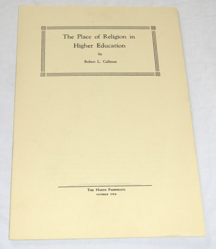 | 17161 | Calhoun, Robert L. | the Place of Religion in Higher Education | The Hazen Pamphlets | Good. | The Hazen Pamphlets Number Two | Education, religioin | $20 |