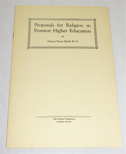 | 17162 | Shedd, Clarence Prouty, Ph. D. | Proposals for Religion in Postwar Higher Education | The Hazen Pamphlets | Good. | The Hazen Pamphlets Number Eleven | Education, religion | $20 |
