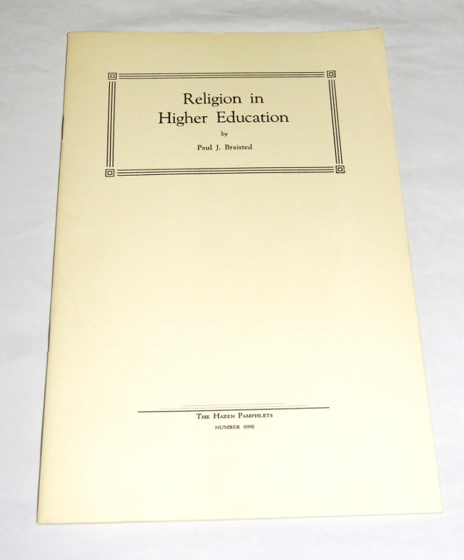 | 17207 | Braisted, Paul J. | Religion in Higher Education | The Hazen Pamphlets Number One | Good. Lightly rusted staples | Education & Religion | Religion, Education | $20 |