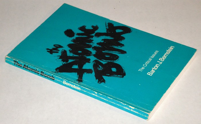| 12799 | Bernstein, Barton J. | The Atomic Bomb The Critical Issues | Little, Brown and Company | Good. The covers have some shelf wear and some of the pages are faintly wavey. There's a university book store stamp inside. | The Atomic Bomb and politics. | Atomic Bomb, Japan, Politics | $75 |