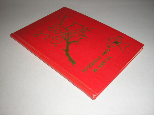 | 11948 | The Foreign Ladies' Guild of the Anglican Cathedral in Seoul | Household Hints In Han'gul | The Foreign Ladies' Guild of the Anglican Cathedral in Seoul | Very good. Light soiling and shelf wear on the covers. No dust wrapper. | In Korean and English, household hints and recipes. | Korea | $20 |