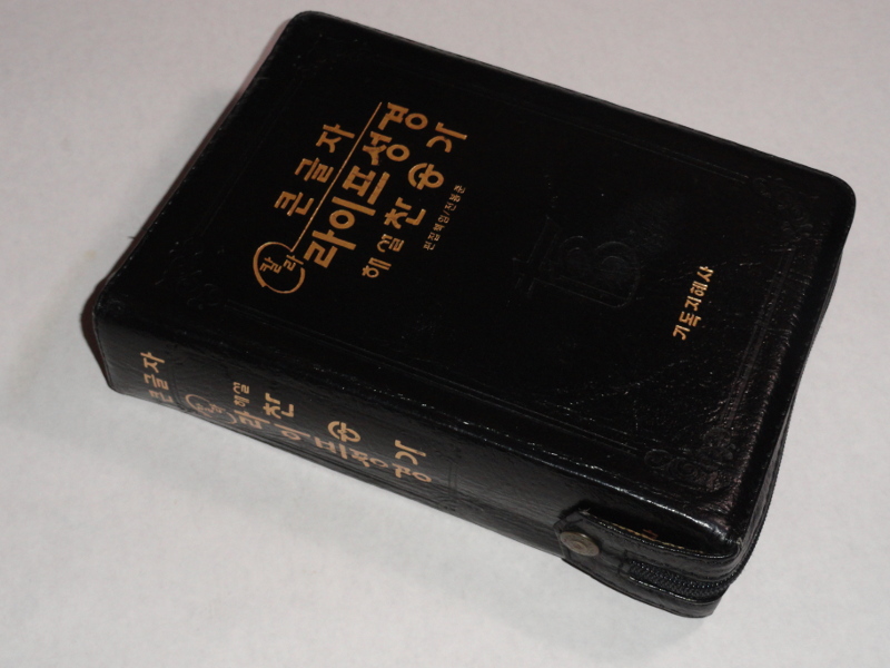| 14798 | Multiple | The Holy Bible with Reference Hankul and Revised | Christian Wisdom Publisher | Very good. Some pages have creases. No other markings. | The Holy Bible in Korean in full, zippered, leather with hymnns in the back. | Korea, Christianity, bible | $30 |