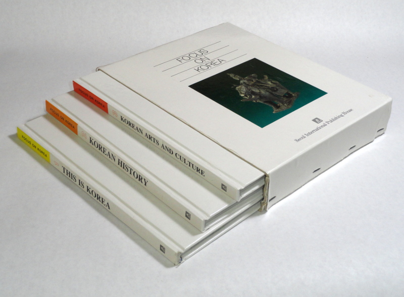 | 15346 | Seoul International Publishing House | Focus On Korea Three Volume Set In A Slip Case | Seoul International Publishing House | Very good. One volume has a slightly bumped corner as does the slip case. | Korean Arts and Culture, Korean History and This Is Korea. Each volume is rubber stamped 'With The Compliments Of The Interenational Cultural Society Of Korea' on the front free end paper. | Korea | $25 |