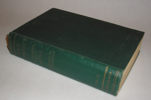 | 10556 | Beyschlag, Prof. Dr. F., Prof. J. H. L. Voght and Prof. Dr. P. Krusch | The Deposits of the Useful Minerals & Rocks Their Origin, Form, and Content Vol. II Lodes-Metasomatic Deposits-Ore Beds-Gravel deposits. | Macmillan and Co. | Fair. Covers and spine have some shelf wear and soiling. Covers and spine have wrinkles. Spine lettering faded. Previous owner's rubber stamp 4 times inside. Owner's name in ink inside. Back hinge has cracking, has been re-glued. One section of pages is slightly higher than the others. Top edges of the pages are gilt. No dust wrapper. | 1914 hardback with pages 515 to 1262, maps, drawings, photos and an index. | Geology, minerals, mining | $35 |