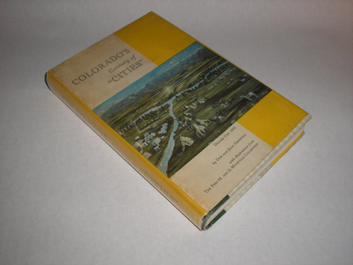 | 11478 | Griswold, Don and Jean | Colorado's Century of "Cities" | Self-published | Good to very good with light wear on the top and bottom of the spine. In a good, lightly worn and soiled, dust wrapper. There's a glue fade through stain on the back of the tipped in plate and the next 2 pages. | A history of Colorado towns. There's one tipped in color plate, b&w photos, a map, appendix, bibliography and an index. | Western Americana, Colorado, Mining, history | $25 |
