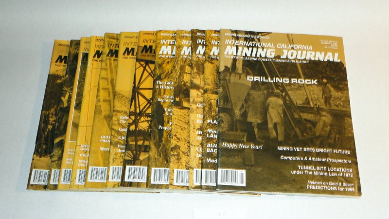 | 13731 | Harn, Kenneth L., editor | International California Mining Journal 1995 complete, 12 issues | Kenneth L. Harn | Good. Very occasional ink notes and creasing. | 8.25 x 10.75 international mining magazines with interesting articles, b&w photos and ads. Mining in Mexico, Arizona, California, Alaska, Oregon, Washington State, Nevada, Idaho and all over the world. | Mining, gold | $20 |