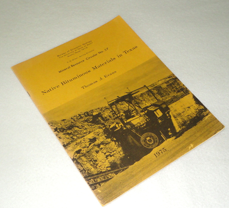 | 13827 | Evans, Thomas J. | Native Bituminous Materials in Texas | The University of Texas | Very good. Light shelf wear. | 8.5 x 11 inches with maps, charts and references of bituminous materials in Texas. There are references. | Texas, Mining, Geology, Bituminous | $20 |