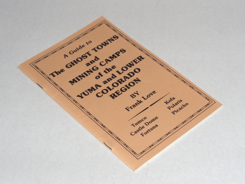 | 15588 | Love, Frank | A Guide to The Ghost Towns and Mining Camps of the Yuma and Lower Colorado Region | Little London Press | Very good. | Ghost Towns and Mining Camps...Tumco, Castle Dome, Fortuna, Kofa, Polaris and Picacho, California and Arizona. There's an inscription by the author, pictures and maps. | Mining, California, Arizona | $20 |