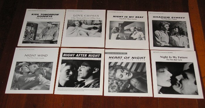 | 12638 | Seattle Art Museum | The Film Noir Cycle, 8 programs, a partial run | Seattle Art Museum | Very good. | 8.5 x 11 inches. The Film Noir Cycle. Night Is My Future, 1992, Kiss Tomorrow Goodbye, 1992, Love Crimes Fifty Years of French Film Noir, 1994, Night Is My Beat, 1994, Shadow Street, 1995, Night Wind, 1996, Night After Night Celebrating Twenty Years Of Classic Film Noir, 1997 and Heart Of Night, 1998 | Film Noir, Cinema, Movie, Seattle Art Museum, Pacific Norhwest, Washington State. | $40 |