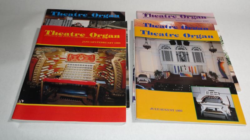 | 14015 | McGinnis, Grace, Editor | Theatre Organ Journal Of The American Theatre Organ Society 1993 6 issues complete | The American Theatre Organ Society | Very good. | 8.5 x 11 inches with interesting articles and photos on theatre organs. Each issue covers 2 months. | Theatre Organ, Theater Organ, Cinema | $20 |