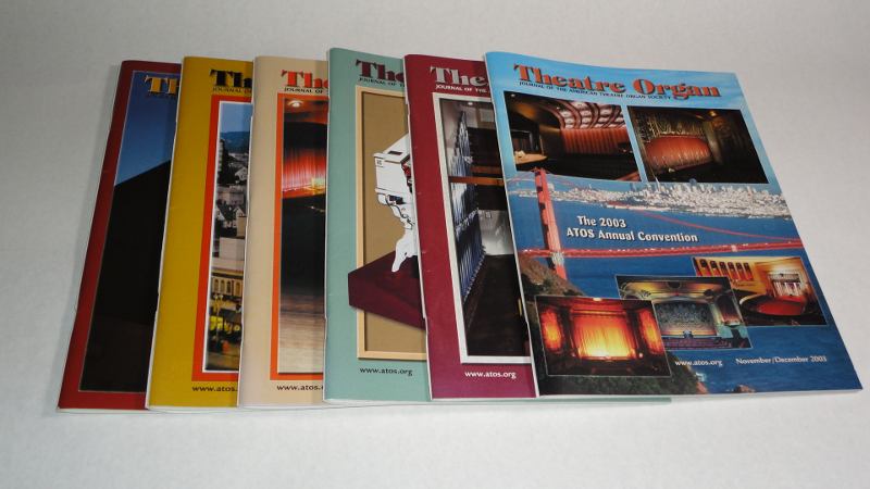 | 14035 | Bickel, Vernon P., editor | Theatre Organ Journal Of The American Theatre Organ Society 2003 6 issues complete | The American Theatre Organ Society | Very good. | 8.5 x 11 inches with interesting articles and photos on theatre organs. Each issue covers 2 months. | Theatre Organ, Theater Organ, Cinema | $20 |