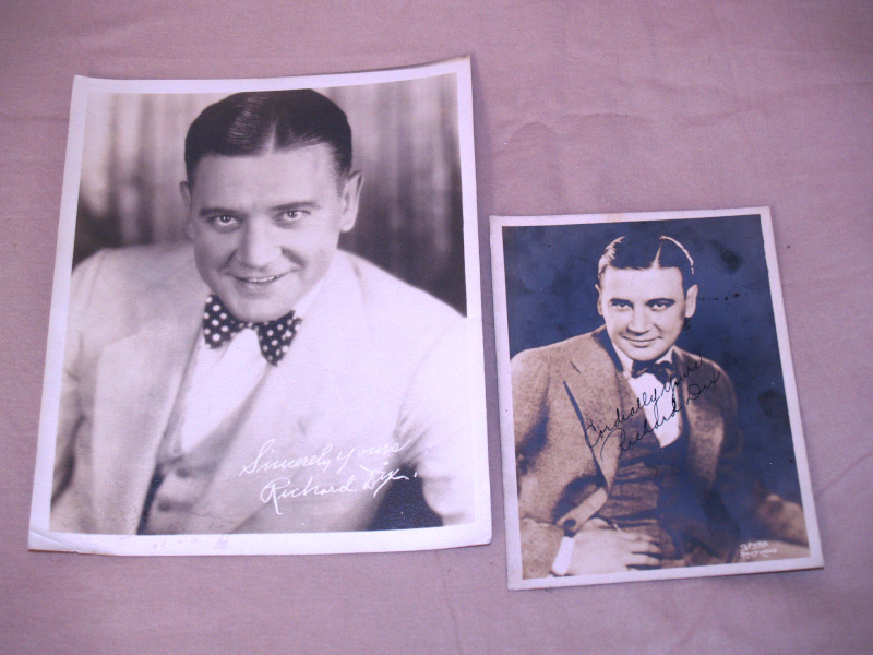 | 16678 | Dix, Richard | Two Richard Dix Fan Pictures | | Good. The smaller picture has remnants of a black scrap book page on the back corners. | 7.5 x 9.5 and 5 x 7 inches, two pictures of film star, Richard Dix. | Cinema, Richard Dix | $20 |