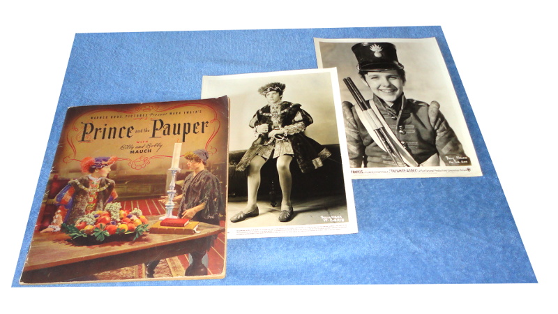 | 17334 | Twain, Mark | The Prince and the Pauper | Whitman Publishing Co. | Good. Light shelf wear. Yellowing pages. | Warner Brothers movie edition. Errol Flynn, Claude Rains Henry Stephenson and Arrton MacLane stared as well. Included are two 8 x 10 vintage photos of Billy Mauch. The photos are good with very small creases on the bottom corners. | Cinema, Movie, Errol Flynn | $60 |