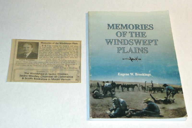 | 13638 | Brookings, Eugene W. | Memories Of The Windswept Plains | Self Published | Good. Covers have light shelf wear and soiling. | An autobiography of the author's life in Nebraska, South Dakota, Wyoming and Montana between 1910 and 1940. Washington state is included at the end. There are many b&w photos. Also included is a newspaper clipping. | Nebraska, South Dakota, Wyoming, Montana and Washington State | $25 |