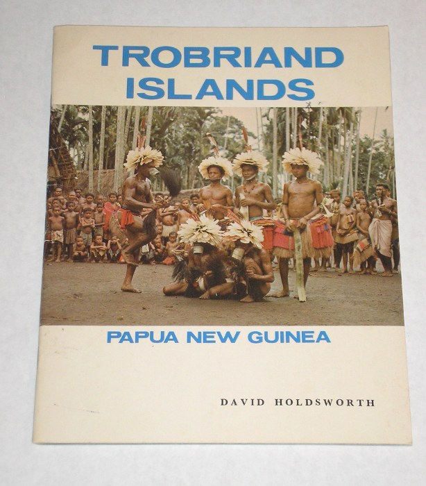 | 12718 | Holdsworth, David | Trobriand Islands Papua New Guinea | Rigby Limited | Very good. | 7.25 x 9.5 inches, color photos of Trobriand people and place with one map. | Trobriand Islands, Papua New Guinea | $25 |