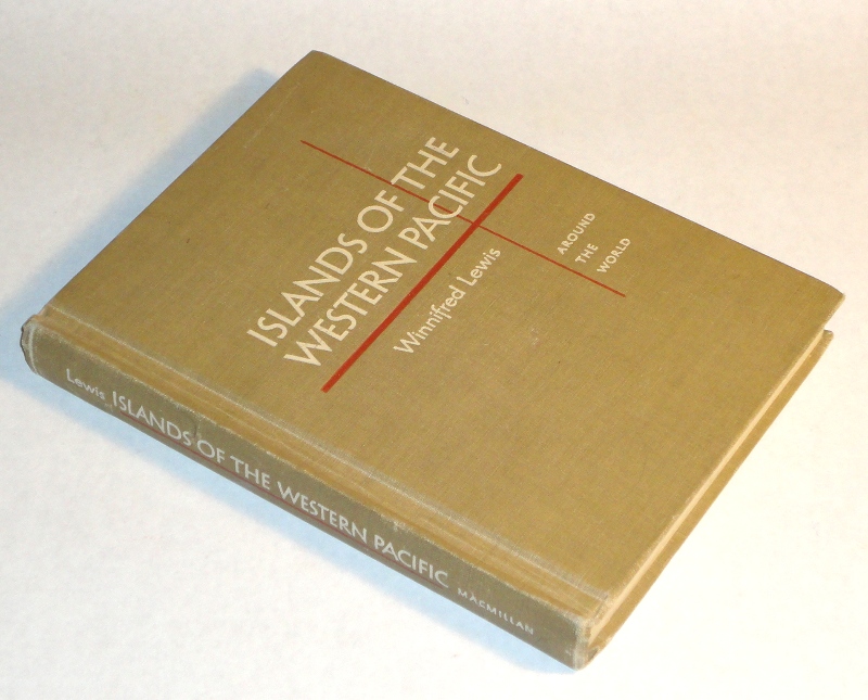| 9259 | Lewis, Winnifred | Islands Of The Western Pacific | The Macmillan Company 1950 hardback first printing with 312 pages, b&w photos and a glossary. | Good. Covers are lightly worn. Edges and back of spine show some wear. One page has a yellowing tape repair. One folded page, occasional folded page corner. Blank school district stamp inside, another small name stamp. No dust wrapper. | Islands of the West Pacific. There are many b&w photos and a glossary. | Islands, West Pacific, Fiji, New Caledonia, New Hebrides, Solomon Islands, new Guinea, Philippines. | $20 |