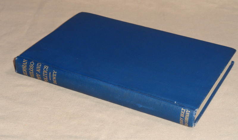 | 15867 | Dewey, John | German Philosophy And Politics | Henry Holt And Company | Good. Erasure on the front free end paper. Owner's name in ink. Penciling on the back free end paper. No dust wrapper. | German politics and philosophy before WWI | Germany, philosophy | $75 |