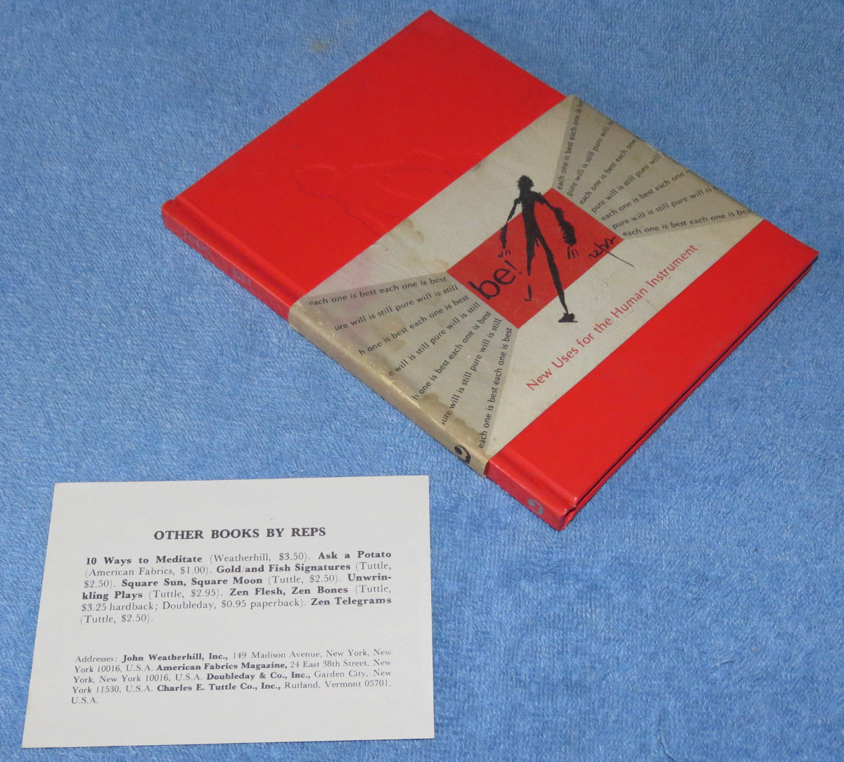 | 17517 | Reps, Paul | Be! New Uses for the Human Instrument | Weatherhill | Very good. Small stain on dust cover / paper band. | Philosophy. Also included is an order card for other books by Reps | Philosophy | $30 |