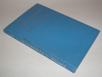 | 10494 | Dill, Betty Carothers | Fragments | Dorrance & Company | Good, with light shelf wear and soiling on the covers. Front gutter has a dark line. No dust wrapper. | 1943 2nd edition hardback, inscribed by the author, with 73 pages of poetry. | Poetry | $25 |