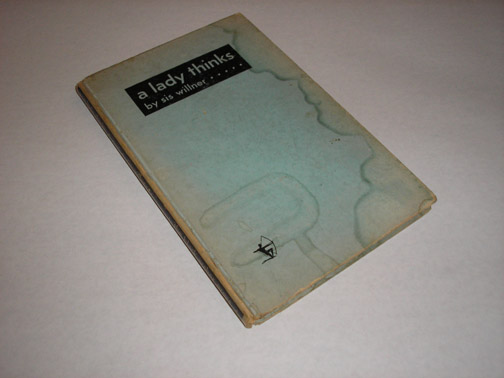| 10867 | Willner, Sis | A Lady Thinks | The Black Archer Press | Fair. Both covers have multiple moisture stains, browning and wear. A slender 1/2 inch chip is missing from the lower corner of the spine. Contents are very good. No Dust wrapper. | 1930 hardback limited edition, # 160 of 350, with 78 pages of poetry. Sis Willner was a poet and lyricist. She wrote lyrics for the broadway show "Star and Garter" in 1942. | Poetry | $20 |