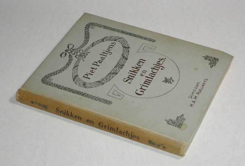 | 14402 | Paaltjens, Piet | Snikken En Grimlachjes | Schiedam H.A.M. Roelants | Good. Covers and spine have some soiling. Spine is faded brown. No dust wrapper. | Verse in Dutch | Poetry, Dutch | $25 |