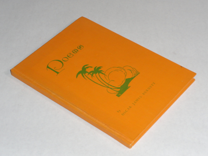 | 14844 | Burnett, Oscar James | Poems | Self-published | Good. Two small indents on the front cover and a very faint moisture circle. | Poetry | Poetry | $25 |