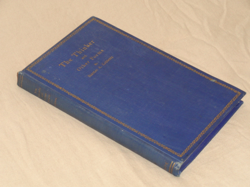| 15750 | Coblentz, Stanton A. | The Thinker And Other Poems | James T. White & Co. | Good. Light shelf wear and soiling on the covers. There's a minor spot on the bottom of the page edges. | Poetry. | Poetry | $50 |