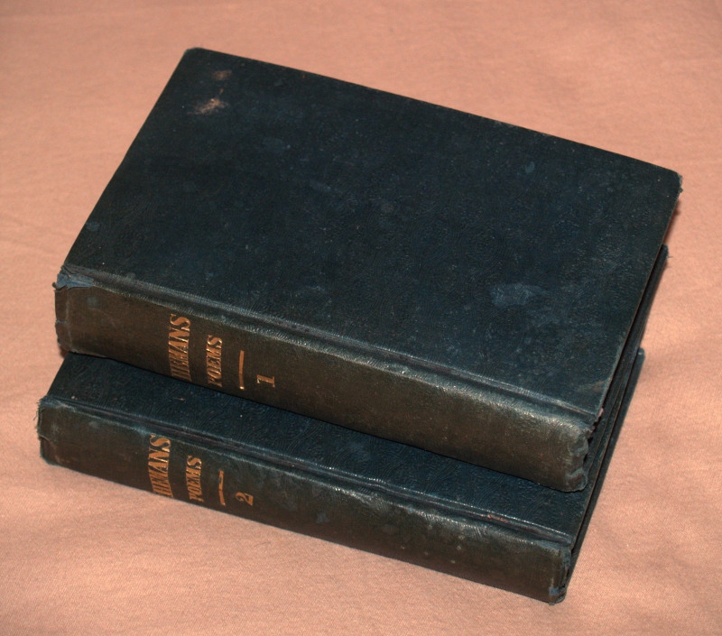 | 16580 | Hemans, Mrs. Felicia | Poems By Mrs. Felicia Hemans. A New Collection Two Volumes | Hillard, Gray, Little and Wilkins | Fair to good. Shelf wear and soiling on the covers and spines. Names in ink an pencil inside. Occasional brown staining/spots throughout. | Poetry | Poetry | $30 |