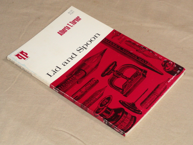 | 5943 | Turner, Alberta, T. | Lid and Spoon | University of Pittsburg Press 1977 paperback, inscribed by the author, with 56 pages. | Good. Small moisture stain on edge of spine, front cover. | poetry | poetry | $15 |