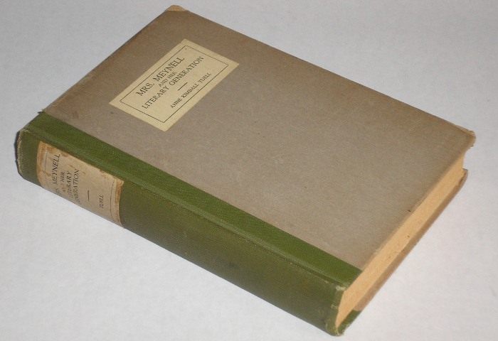 | 12560 | Tuell, Anne Kimball | Mrs. Meynell and Her Generation | E. P. Dutton & Company | Good. Light shelf wear, soiling and bumping on the covers and spine. Wear on the corners. No dust wrapper. | A biography of Alice Meynell, English writer, critic, editor, suffragist and poet. There's a bibliography and an index. | Alice Meynell, print media, poetry, biography | $25 |