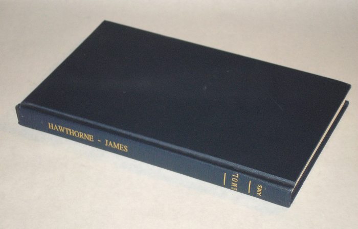| 12975 | James, Henry | Hawthorne | AMS Press | Very good. Owner's name in ink inside. No dust wrapper. | Henry James biography of Nathaniel Hawthorne. | Print media, biography, literature, Nathaniel Hawthorne | $20 |