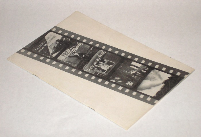 | 13152 | The Association of American Railroads | All Aboard! | The Association of American Railroads | Good. Light soiling on the covers. | 6 x 9 inches, a faux movie presentation of The Association of American Railroads on railroads in the US | Railroad, The Association of American Railroads, ephemera | $20 |