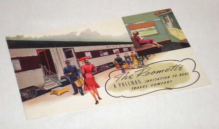 | 13153 | Pullman | The Roomette A Pullman Invitation To Real Travel Comfort | Pullman | Good. Back cover has light soiling and a small red stain. | 9 x 6 inches, with b&w photos of a Pullman Roomette and a list of prices. | Railroad, Pullman, ephemera | $20 |