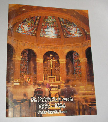 | 10424 | Campagna, Bob editor | St. Patrick's Church Cedar Rapids, Iowa One Hundred Year Celebration 1886 - 1986 | Abbe Creek Press | Good. The top corner of the book is lightly creased. Light soiling on the covers. | 1986 stapled 8.5 X 11 paperback with b&w photos. | Religion, Catholicism, St. Patrick's Church, Cedar Rapids, Iowa | $20 |