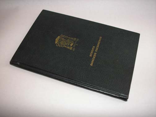 | 10694 | Gercke, Daniele Jacobo | Statuta Dioecesis Tucsonensis | F. H. Keddington Co. | Good. Cracked hinges. Holding. No dust wrapper. | 1929 hardback with 35 pages, in Latin, regulations for Catholic Priests in the Tuscon Diocese. A pastoral letter from the Bishop of Tucson is included. | Religion, Catholicism, Tucson, Arizona | $30 |