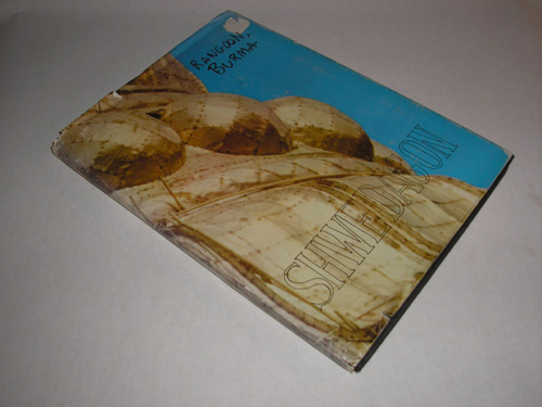 | 11904 | Pe, Win | Shwe Dagon | Printing and Publishing Corporation, Rangoon | Good. The front edges of both covers have glue? showing through the cloth. In a fair dust wrapper that has wear and tear on the edges and "Rangoon, Burma" written on the front in magic marker. | 8 x 11 inches with b&w and color photos. There are four 20 x 15 inch drawing of the temple in a back pocket. Buddhism and Shwe Dagon Temple in Burma. | Religion, Buddhism, Shwe Dagon Temple, Burma, Myanmar | $25 |